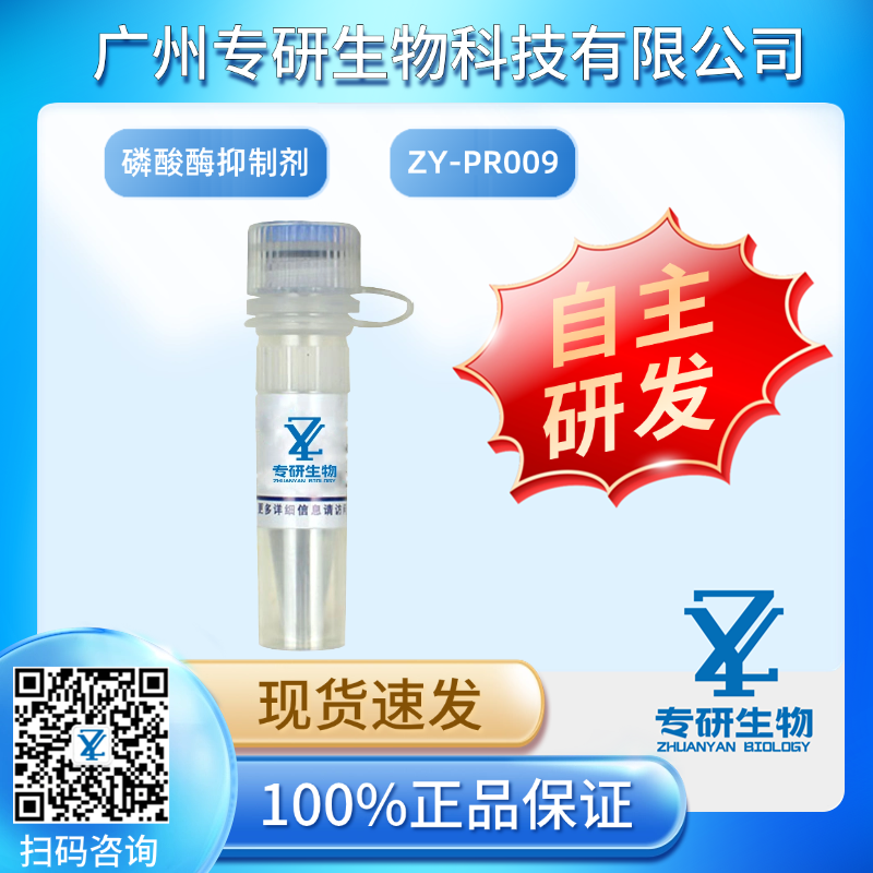 在细胞信号转导中,靶蛋白会被可将磷酸基团转移到特定位点的蛋白激酶磷酸化,而这些磷酸基团在细胞裂解时会被内源性蛋白磷酸酶去除。磷酸酶抑制剂可在哺乳动物培养细胞、原代细胞、动物组织、酵母或细菌细胞的提取或裂解过程中,有效抑制酸性磷酸酶、碱性磷酸酶、丝氨酸/苏氨酸磷酸酶和酪氨酸磷酸酶,保持蛋白原有的磷酸化状态。