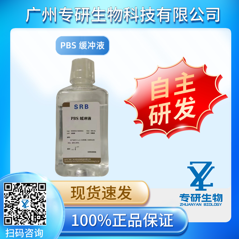 PBS(Phosphate Buffered Saline)即磷酸盐缓冲液,能够提供相对稳定的离子环境和pH缓冲能力,是生物学中经常使用的缓冲盐溶液,与人体血液等渗,可用于分子克隆及细胞培养等。主要成分为磷酸二氢钾、磷酸氢二钠、以及氯化钠,不含钙、镁和酚红,pH 为 7.3-7.5。本产品为 1×工作液,经过除菌处理,可直接使用。