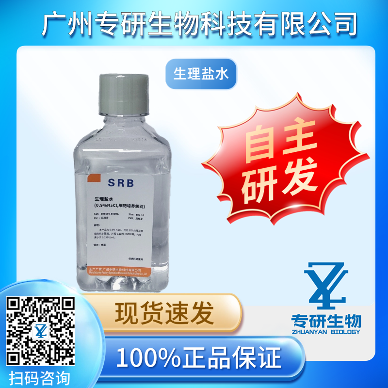 生理盐水(Stroke-Physiological Saline Solution,SPSS)又称无菌生理盐水是指生理学或临床上常用的与动物或人体血浆的渗透压相等的氯化钠溶液。一般情况下两栖类动物氯化钠浓度为 0.67~0.70%,哺乳类动物和人类氯化钠浓度为 0.85~0.9%,平常人体注射用的氯化钠注射液浓度是 0.9%,其渗透压值与哺乳类动物和人类的血浆、组织液都是大致一样的,所以可以用作补液(不会降低和增加正常哺乳类动物和人体内钠离子浓度),也常用作体外培养活组织、细胞等。本产品的渗透压与哺乳类动物和人血浆渗透压相近,为常用的体外培养活组织、细胞的盐溶液。配置药物、动物灌注必备试剂。主要由氯化钠、去离子水组成,经高压灭菌,该试剂为 1×工作液,直接使用。