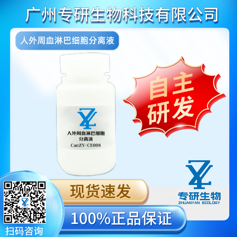本产品是一种用于分离人外周血淋巴细胞的无菌、低内毒素水平的密度梯度分离液。其分离原理是根据血细胞的密度差异(红细胞和粒细胞密度为1.090 g/mL左右;淋巴细胞和单核细胞密度为1.075~1.090 g/mL;血小板为1.030~1.035 g/mL),通过离心使一定密度的细胞按相应密度梯度分布,从而将淋巴细胞从人外周血或脐带血中分离出来。